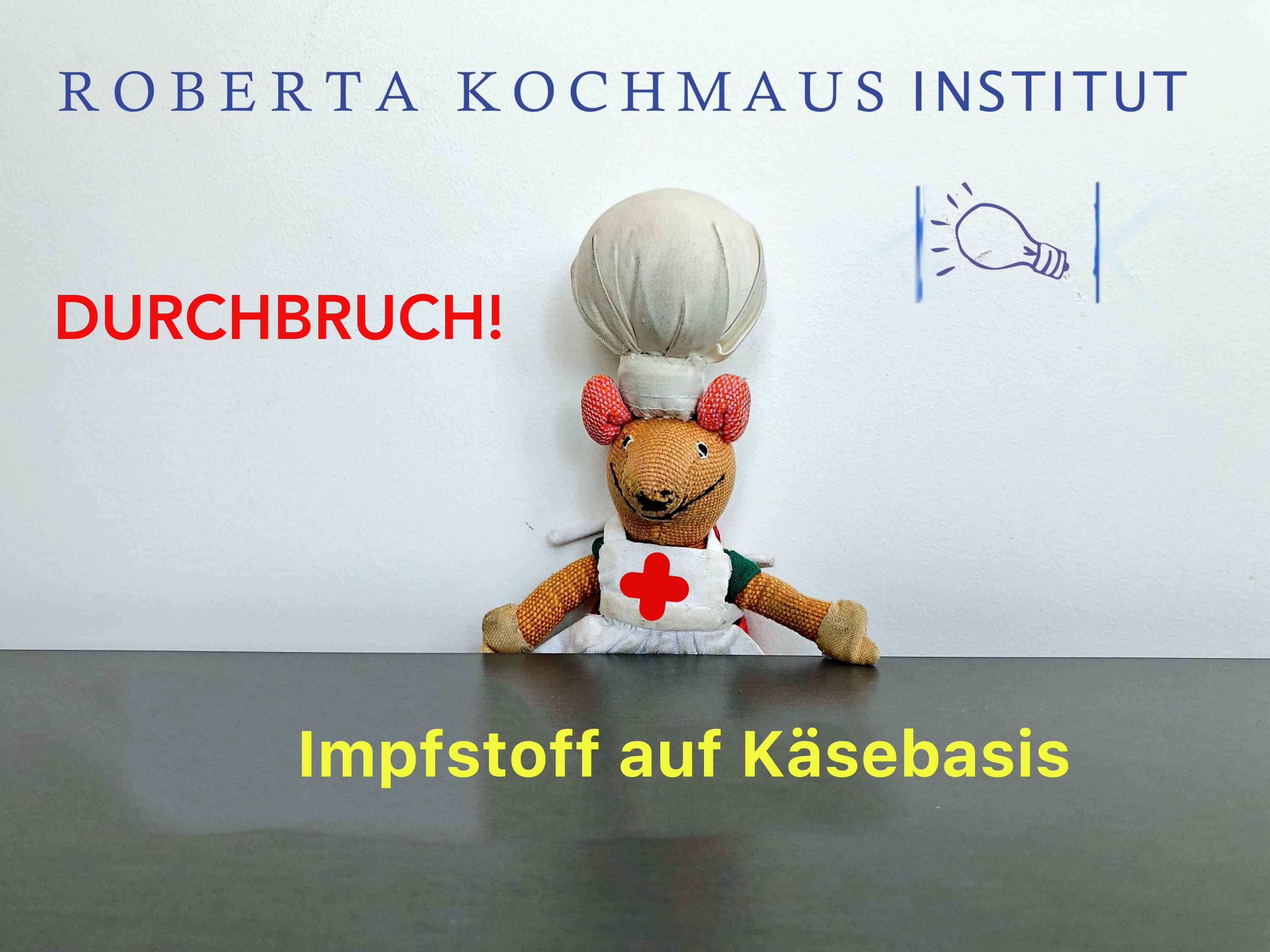 Nach bahnbrechenden Experimenten ist dem Roberta-Kochmaus-Institut der Durchbruch im Kampf gegen Corona gelungen. Ein Team von Experten unter Führung der Laborleiterin Kochmaus bietet ab sofort Impfstoffe für Alle auf Käsebasis an.