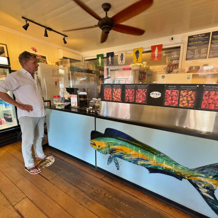 Nur wenige Kilometer von Dillingham entfernt in die andere Richtung, ist die Nordküste besonders malerisch und historisch. In dem kleinen Ort Haleiwa gönnen wir uns eine frische Poke Bowl und schauen dem gemütlichen Treiben zu.
