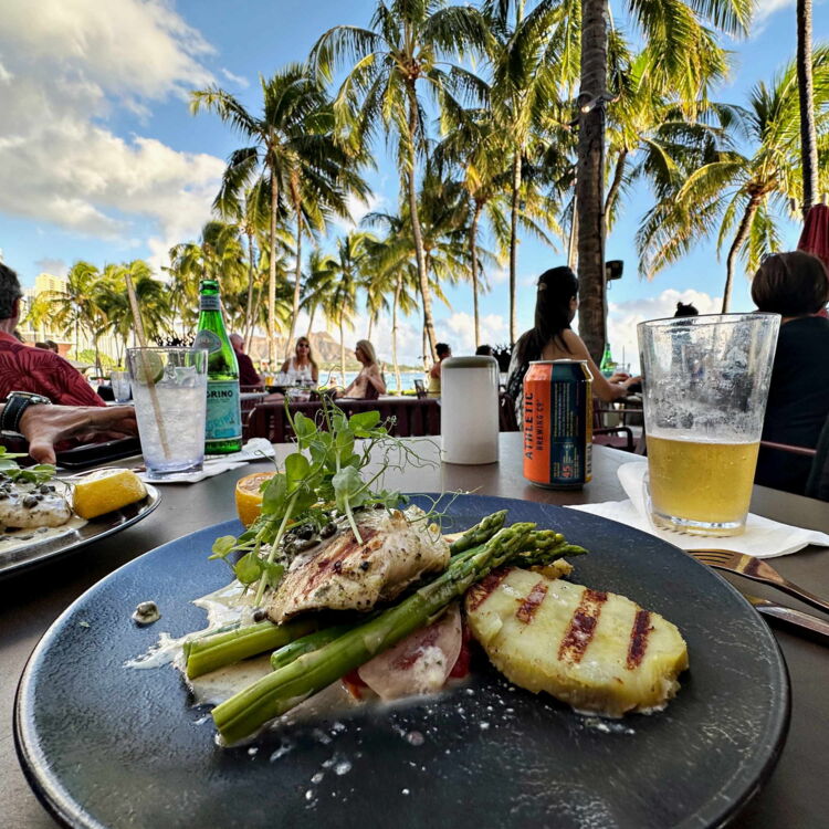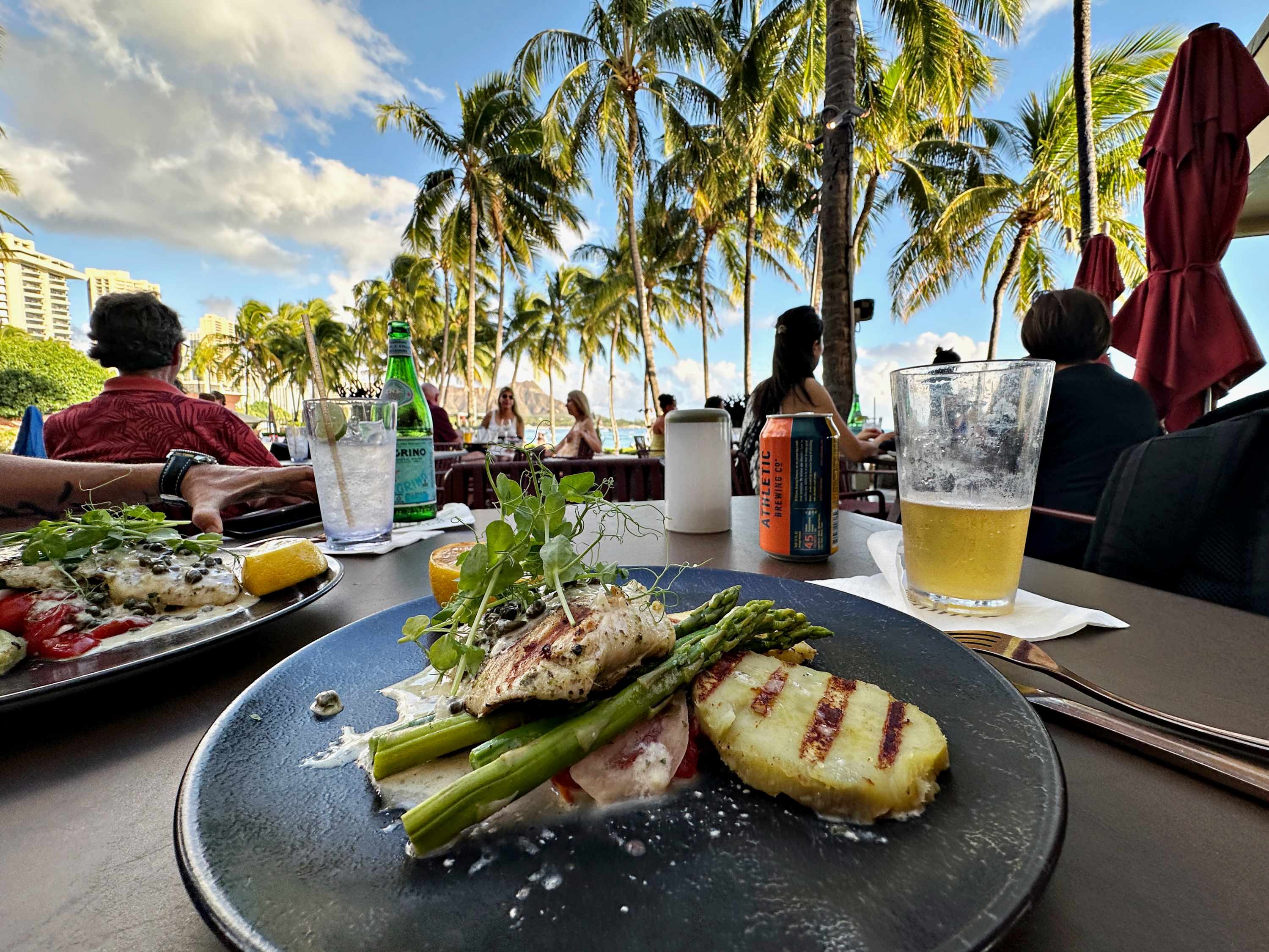 Mike und ich beziehen Quartier am Waikiki Beach und erfreuen uns nach der ofenheißen Wüste Arizonas nun auf der Insel an der tollen Aussicht auf den Pazifik. Links eingerahmt vom ikonischen Diamond Head und rechts von den Auslegern des Hafens von Honolulu. Der frische Fisch unter Palmen, untermalt von Ukulele-Klängen, die auf einem dezenten Meeresrauschen zu uns herübersurfen, sind sowas von Aloha. Aber sowas von...