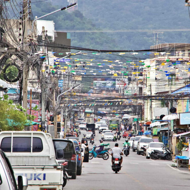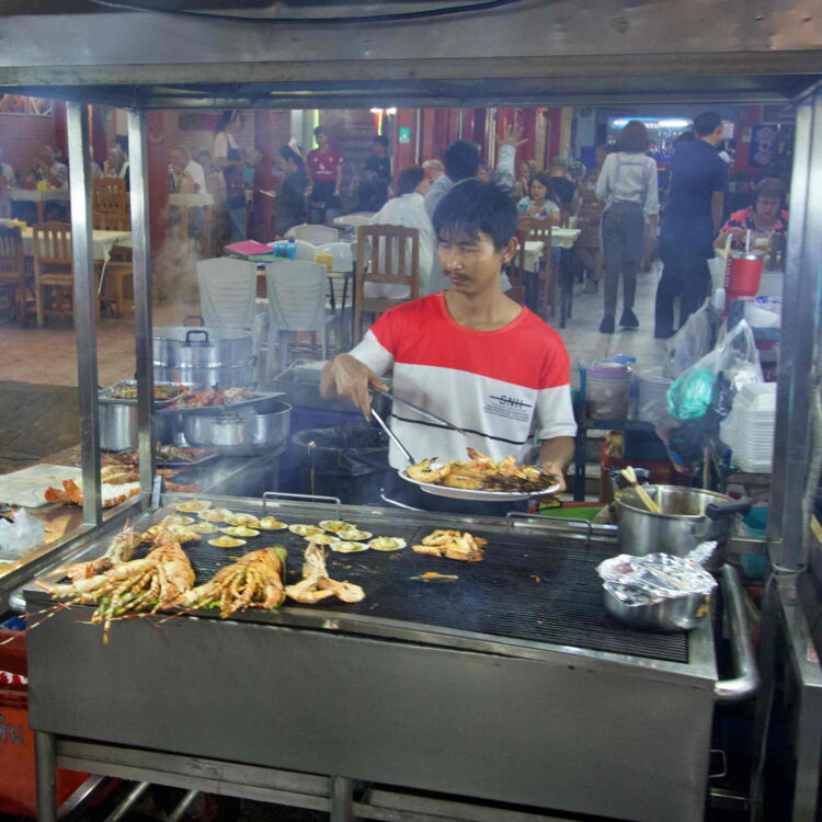 In der Stadt ist es dann ähnlich wie am Strand, nur ohne Wasser. Wir legen die fünf Kilometer zum Hotel auch hier zu Fuss zurück und erleben Hua Hin als einen weiteren Ort ohne eigenes Gesicht. Kaufhäuser, Nachtmärkte, Mega-Verkehr, schlechter Luft und Infrastruktur, die aus dem letzten Loch pfeift. Das verträumte Fischerdorf von einst ist Vergangenheit. Es erinnert nur noch als alte Postkarte an die Zeit, bevor die königliche Familie in den 1920er Jahren - also lange vor der Erfindung der Plastiktüte - den Ort als Seebad für sich entdeckte.