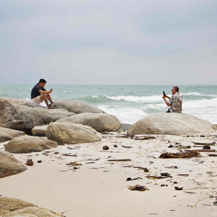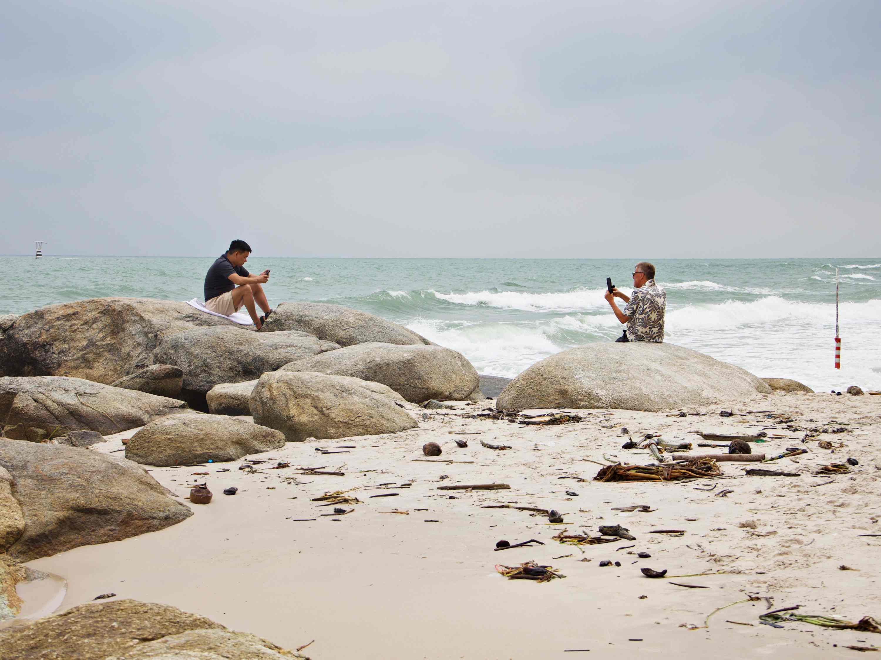 Wenn diese Geschöpfe es wenigsten dabei beliessen, „nichts sehen, nichts hören, nichts sagen“ - ginge es ja vielleicht noch. Stattdessen wird der freie Meter zwischen Müll und Meer für das unvermeidliche Selfie genutzt, um wahrscheinlich auf Instagram & Co zu erzählen, wie super happy man ist, dass man den coolen Hua-Hin-Beach so ganz allein für sich genießen kann.