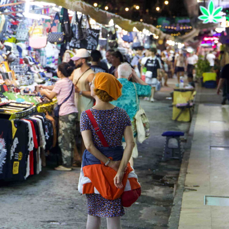 Als es dämmert, fällt der Roten ein, dass sie einen Nachtmarkt besuchen will. Klaus übernimmt. Wir brechen auf.