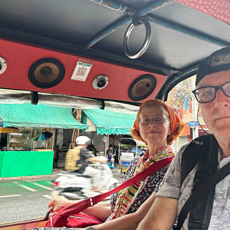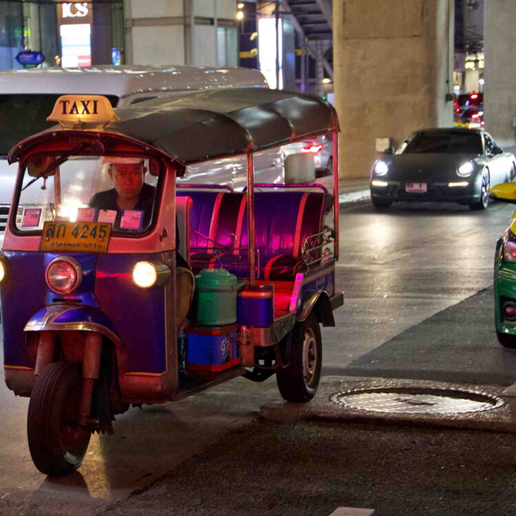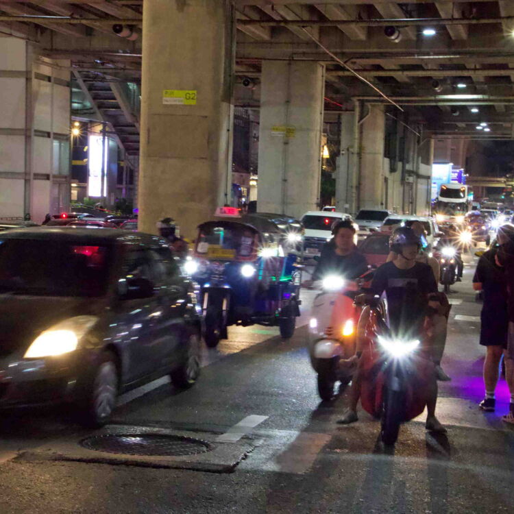Die letzte Herausforderung des Tages ist die Heimkehr ins Hotel. Von allen Fahrgelegenheiten entscheiden wir uns erneut für ein Tuk-Tuk. Klaus nimmt den Skytrain. Er wird eine Stunde unterwegs sein, bis er seine Unterkunft erreicht. Der Abschied ist kurz und herzlich. Keine Minute später hat Bangkok uns alle wieder verschluckt.