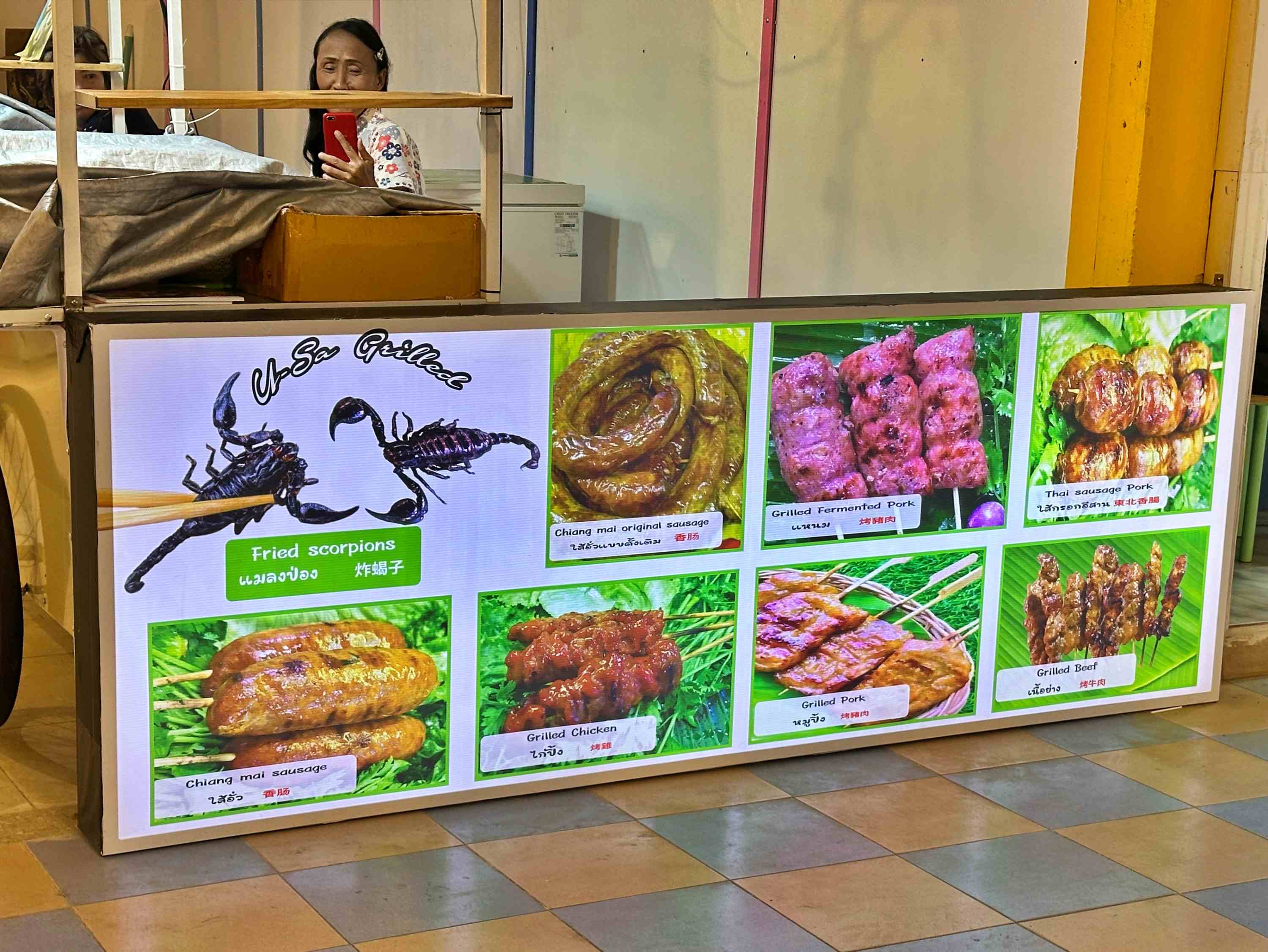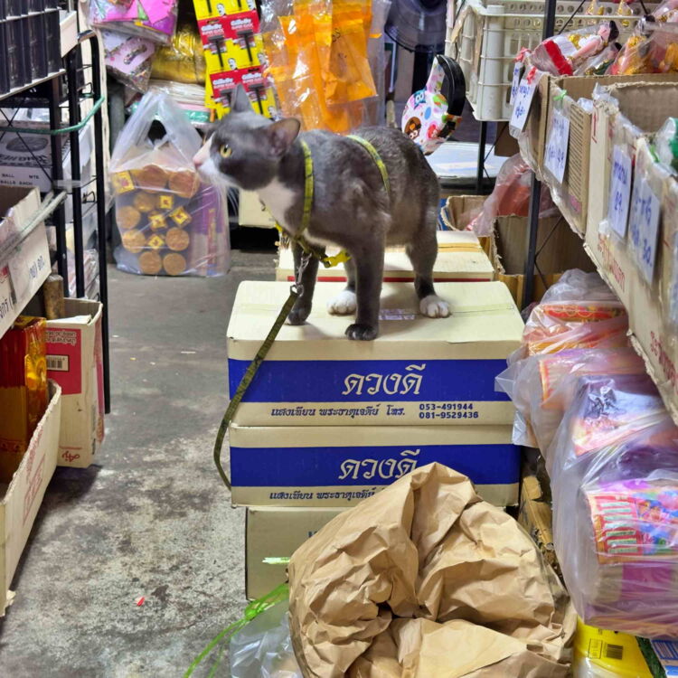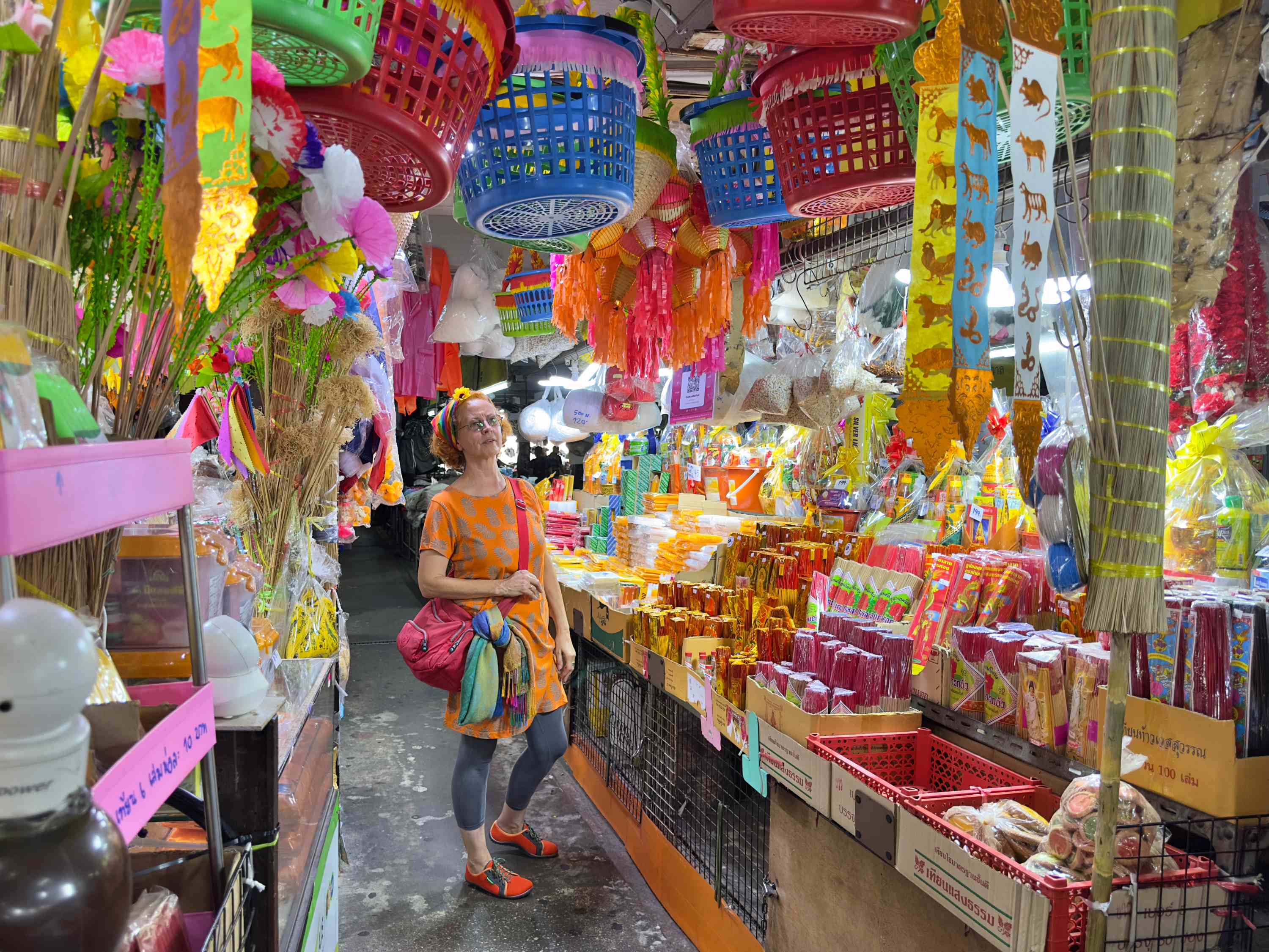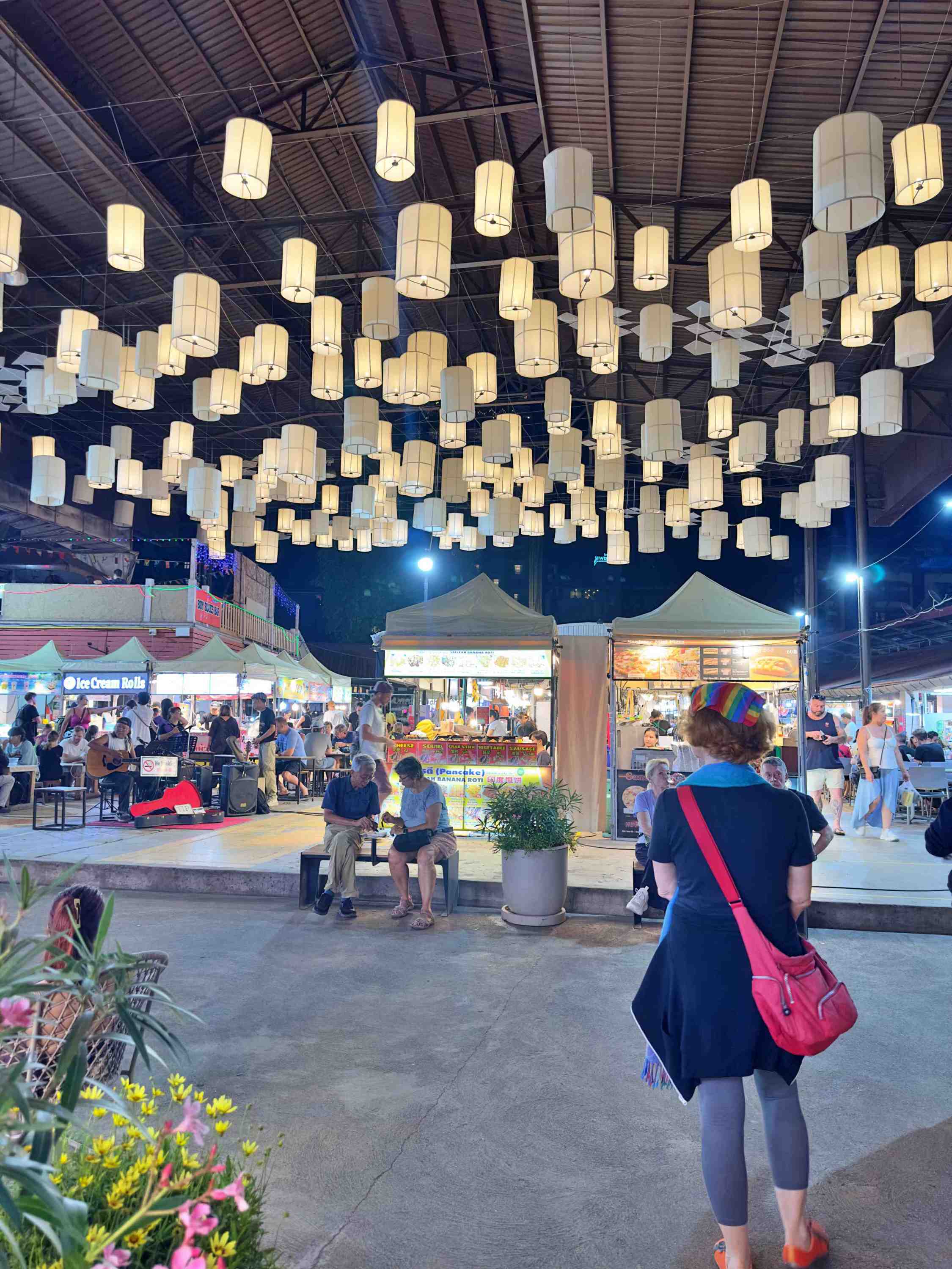 Als Unterkunft wählen wir diesmal ein atmosphärisches Hotel im Kolonialstil. Von dort erreichen wir alles im Innenstadtbereich zu Fuss. Bereits am ersten Abend geht es über einen Nachtmarkt, der diesen Namen auch verdient. Die Rote freuts. Den Grauen freuts, dass es die Rote freut. Und so freuen sich beide seit Ankunft in Thailand zum ersten Mal gemeinsam.