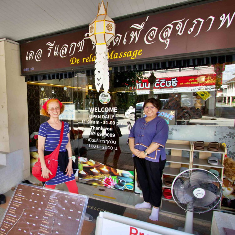 Eine Stunde lang Massage mit Kokosöl für die Rote wird zum Höhepunkt des Aufenthaltes in Chiang Rai. Dann geht es nichts wie ab zum Busbahnhof. Nach vier Stunden Fahrt über Land erreichen wir die nächste, fast gleichklingende Stadt: Chiang Mai.