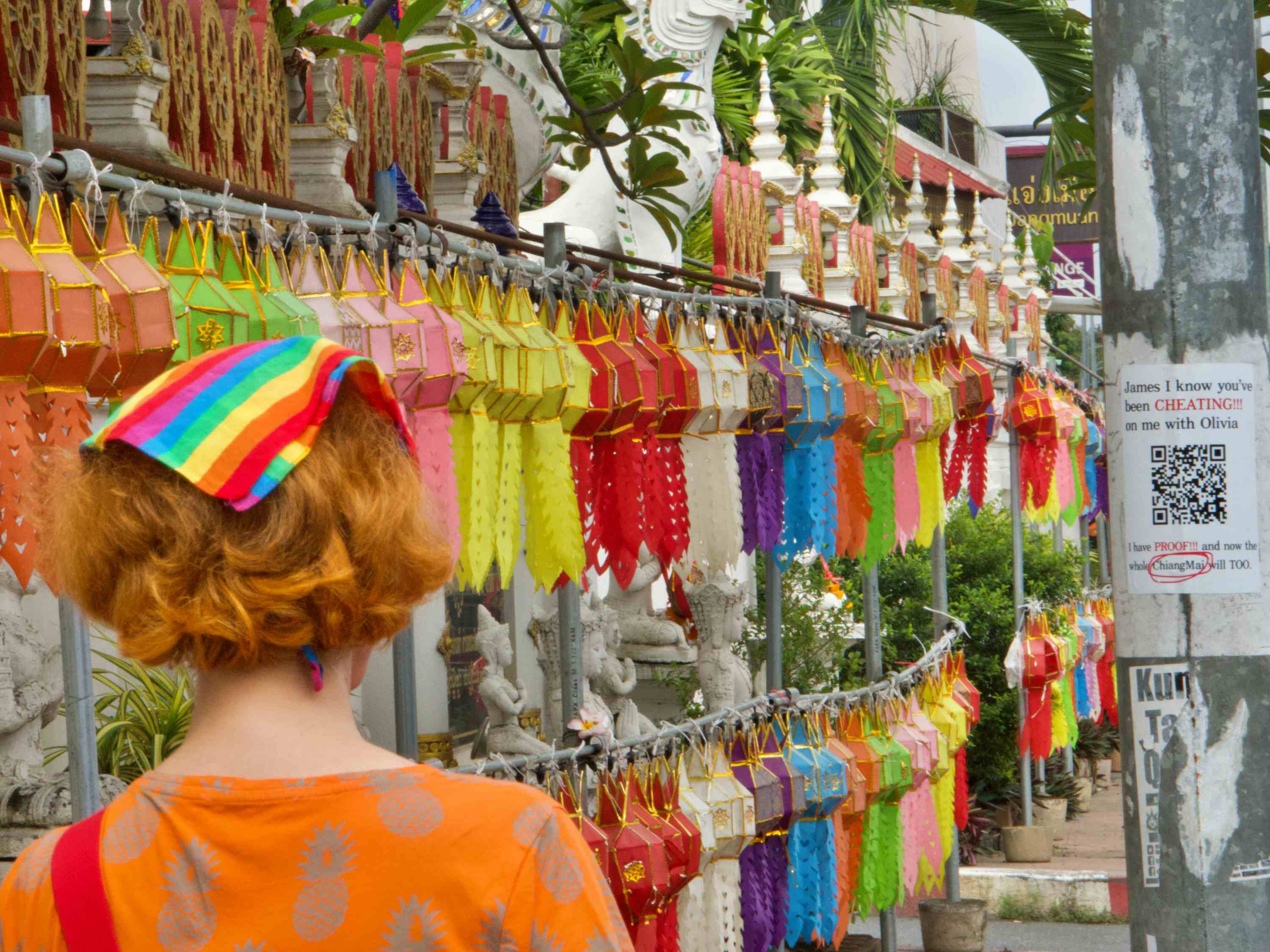 Die größte Konkurrenz erleben die Tempel von rund 300 Cafés allein im Stadtgebiet, Tummelplätze für vor allem westliche Besucher. Chiang Mai ist eine der größten Drehscheiben Asiens, die von digitalen Nomaden genutzt wird. Vor allem junge Menschen aus westlichen Herkunftsländern finden hier eine Teilzeitheimat nach dem Motto: mit Fernarbeit sich zu Hause gutes Geld bezahlen lassen, um in einem Land mit dem Bruchteil unseres Durchschnittseinkommens zu leben wie Graf Koks.