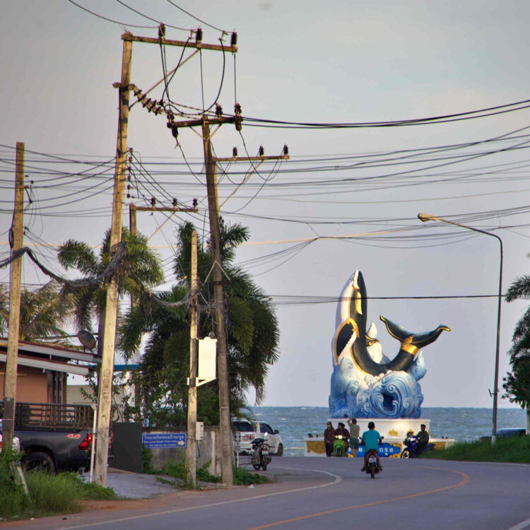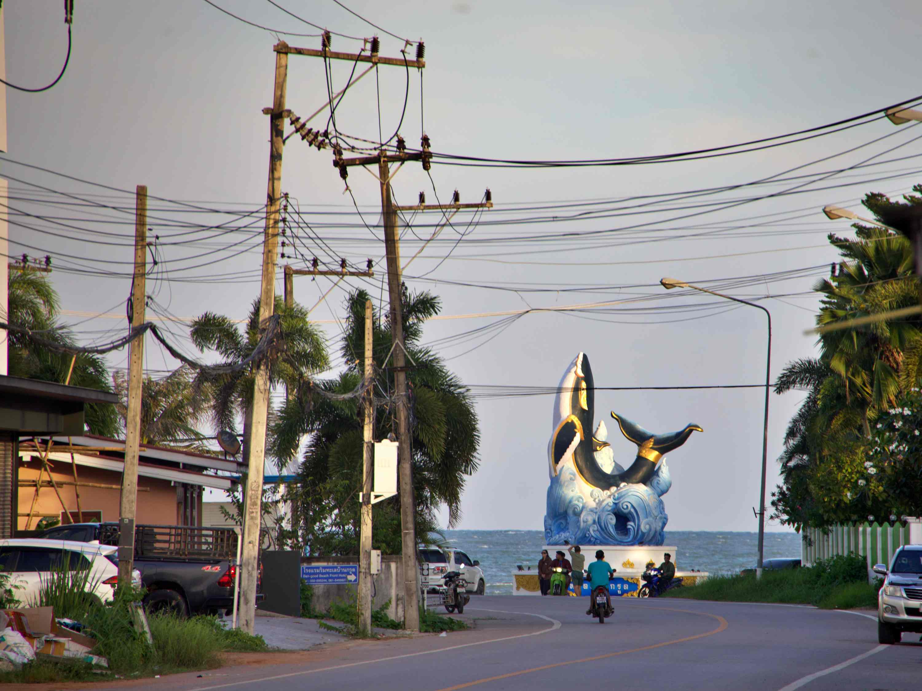 Als wir nach zwei Stunden Fahrt in Ban Krut aussteigen, steht das einzige Taxi des Ortes wie bestellt am Bahnhof. Der Taxifahrer im Nebenberuf wartet wie bei der Lottoziehung darauf, dass aus dem einzigen Zug des Tages Leute aussteigen. Er hat Glück. Als wir vor dem Bahnhof stehen, haben wir keinen Schimmer, wie wir in das abgelegene Resto Sea Resort kommen, das vier Kilometer ausserhalb des abgelegenen Ortes Ban Krut liegt. Als wir das Taxi wieder verschwinden sehen, schwant uns, dass wir uns bereits jetzt darum kümmern müssen, wie wir hier wieder wegkommen. Und das wollen wir schneller als gedacht.