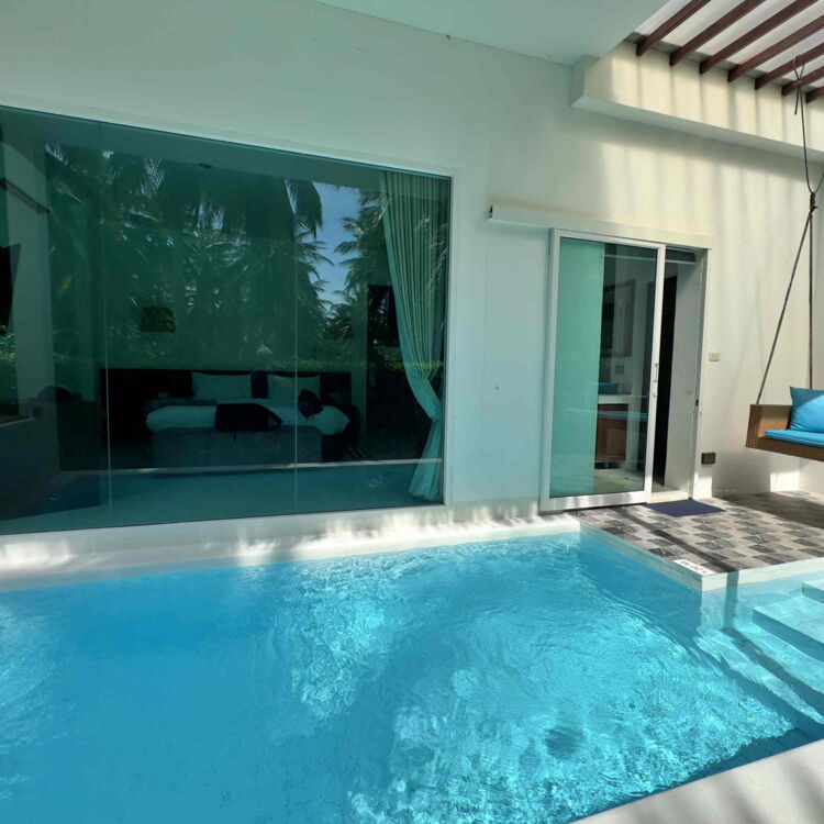 Jedenfalls lösen weder der zwanzig Meter breite Privatstrand noch der von vier dicken weissen Männern belagerte Poolbereich den Wunsch aus, hier zu verweilen.
