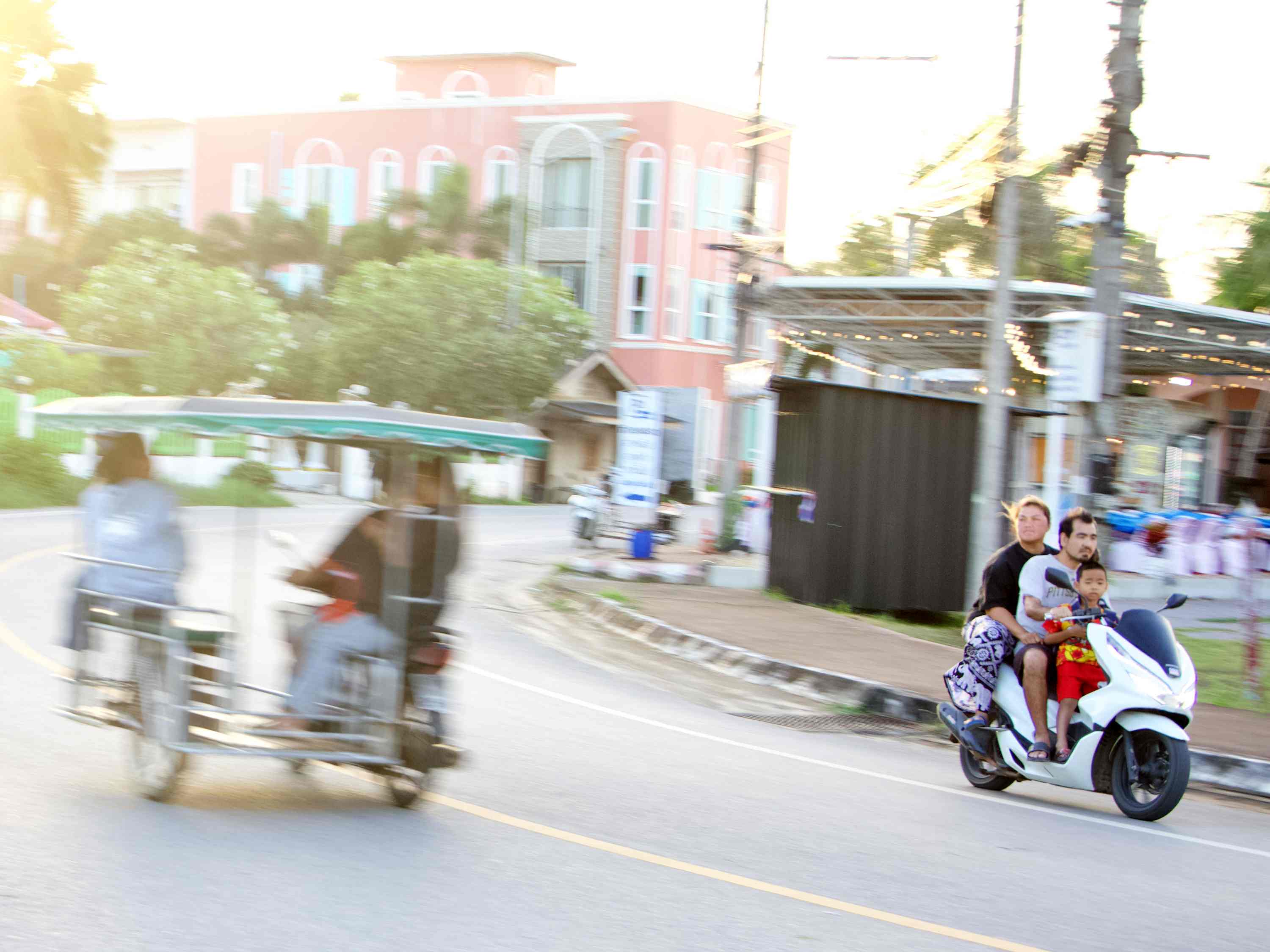 Die hoteleigene Rikscha fährt uns am Abend freundlicherweise in den Ort zurück, wo wir eine warme Mahlzeit bekommen. Dort beschließen wir, die zweite gebuchte und bereits bezahlte Nacht zu knicken. Wir verstehen nicht, wie man an diesem Ort länger verweilen kann. Zwischen den Bildern auf den Buchungsseiten und den Erwartungen, die sie beim Betrachter (oder zumindest bei uns) auslösen, und der Realität, liegt ein Graben so breit wie der Grand Canyon. In dem stecken wir nun fest und aus dem wollen wir wieder raus. Und langsam fragen wir uns, ob nicht das Land, sondern wir das Problem sind. Wie auch immer, die Kombination von uns und Thailand funktioniert irgendwie nicht.